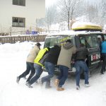 Immer wieder –…..„so a schöner Tag……“ — nicht nur der diesjährige Aprés-Ski-Titel passte wieder zu den sechs Tagen.Die 25. Dienstfahrt führte 21 Mann plus einen Selbstfahrer mit drei Klein-Bussen nach Westendorf in die Kitzbüheler Alpen. Selbstverständlich wurde samstags bei bestem Wetter das Hahnenkammrennen mit der Abfahrt der Herren als Highlight eingeplant.Ankunft Pension gegen 7 Uhr, umziehen und Weiterfahrt zur Startnummernvergabe – oh, nee, leider nur als Zuschauer standen wir an den Hängen und Pisten!After Race Party – Enttäuschung pur! Kitzbühel mit sehr vielen vollgesoffenen Österreichern (wohl auf den schweizerischen Sieg hin) in Weihnachtsmarktatmosphäre nur ohne Bäume.Vielleicht wäre umziehen und ein möglicher Abendbesuch bei den Promis besser gewesen.Bereits sonntags zum ersten Skitag konnte die Gruppe einen internen Stargast begrüßen: Sven Niesner. Als Wahl-Münchner lies er sich einen Tagesbesuch bei uns nicht nehmen und konnte mit uns bei herrlichstem Wetter die Hänge runterwedeln.Als sehr gut zu bewerten ist die neue Gondelbahn in Westendorf, welche den direkten Anschluss an die Skiwelt Wilder Kaiser-Brixental und die Hohe Salve gewährleistet. Die damit verbundenen Pisten aller Schwierigkeitsgrade brachten natürlich auch wieder einige der begehrten „Sturz-Runden“ in den vielen Hütten hervor.(Wer fellt – bezellt!!.)