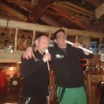 ausgefahrene Skiroute zu erreichen war.Hütte toll,big Musikanlage, Hüttenwirt als DJ – passt – hier blieben wir dann auch etwas länger bis uns nach kurzer Abfahrt das hütteneigene Taxi zum Essen ins Tal fuhr. Hierbei wurde in der Pizzaria (übrigens mit Schorsch T.) ,dann wieder bei schallendem Gelächter, einem Teilnehmer genussvoll Salatöl als Grappa angedreht,der diesen auch regelrecht ungeprüft vernichtet hatte.