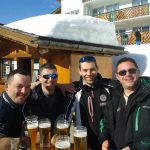 Tag 2 empfing uns Trüb aber mit Hoffnung auf mehr. So sollte es auch kommen, nachmittags riss es auf und man konnte nun endlich das Katzenfell von den Ski machen – un die Horex mo laafe losse – .Geschwindigkeiten um und über 85 km/h waren nun endlich drin sofern die teils recht breiten Pisten frei waren. Angenehm war, daß Aprés Ski und Abendessen nahezu in einem Zug verrichtet werden konnten und dann meistens einer der letzten Nachtlinerbusse uns heimbrachte um nach ca. 14 Stunden die Skischuhe zwischenzeitlich mal wieder ausziehen zu können.